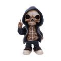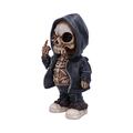 Flip the Bird – A Bold Statement of Rebellion and Street Art The Flip the Bird figurine is a striking piece that captures the defiant spirit of street art and rebellion. Depicting a skeleton in a hooded jacket, this figurine raises its middle finger in protest, making a bold statement of nonconformity. With one arm hanging casually and the other raised high in defiance, it embodies the essence of rebellion. Detailed anatomical features, including an open jacket that reveals the ribcage, enhance the lifelike yet fantastical design. Each bone and skeletal feature is meticulously hand-painted to create a vibrant, edgy piece. Packaged securely in a gift box, Flip the Bird is perfect for collectors of urban art, streetwear enthusiasts, and fans of alternative art. Its rebellious flair is sure to attract attention and spark conversation, making it an ideal addition to any collection or retail display.