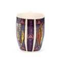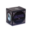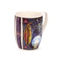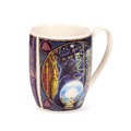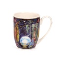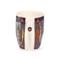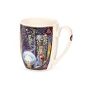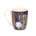 Lisa Parker - Rise of the Witches Cat Porcelain Mug. A very beautiful motif with a black cat in a gothic and spooky style. On this mug, there is a black cat in a magical forest with its paws holding a crystal ball. In the ball you can see a witch flying in the air. The cat's eyes are lit yellow and the trees form a pentagram above the cat's head.