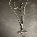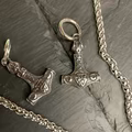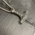 Bær et ikonisk symbol på beskyttelse og styrke med denne Mjølner-halskæde. Vedhænget kombinerer Thors legendariske hammer med indgraverede Valknut-symboler i et keltisk-inspireret design, alt udført i robust, sølvfarvet 316L rustfrit stål.