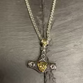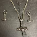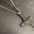 Dette smykke forener to af de mest genkendelige og dybt symbolske tegn fra nordisk mytologi: