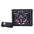 Nemesis Now: Baphomet tegnebog - pung. Denne alternative tegnebog er resultatet af den forskruede fantasi hos Nemesis Nows interne designteam . Den er dekoreret med hovedet af en tre-hornet sabbats ged med et pentagram hævet fra kraniet og er perfekt til dem, der har brug for at opnå balance i deres liv. Under hovedet hviler et fem takket pentagram omgivet af indviklede mønstre. Over det sidder et par kranier, mens to kongekobraer er klar til at angribe under den. Dette mesterværk er perfekt til at opbevare dine penge sikkert og har flere rum til kort og kontanter. Baphomet pungen har en sølvkæde, der er knyttet til pungen.